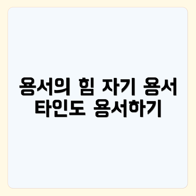 용서는 강력한 변화를 초래하며, 감정의 짐을 덜어내고 안정감을 높입니다. 자기 용서는 자존감을 회복하고 긍정적인 미래를 위한 기반을 형성합니다. 어렵더라도 지금 이 순간 용서의 과정을 시작하세요.